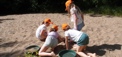 Große und kleine Abenteurer sieben in unserer Sandbucht mit Begeisterung nach Perlen, fossilen Haifischzähnen und anderen Fossilien.