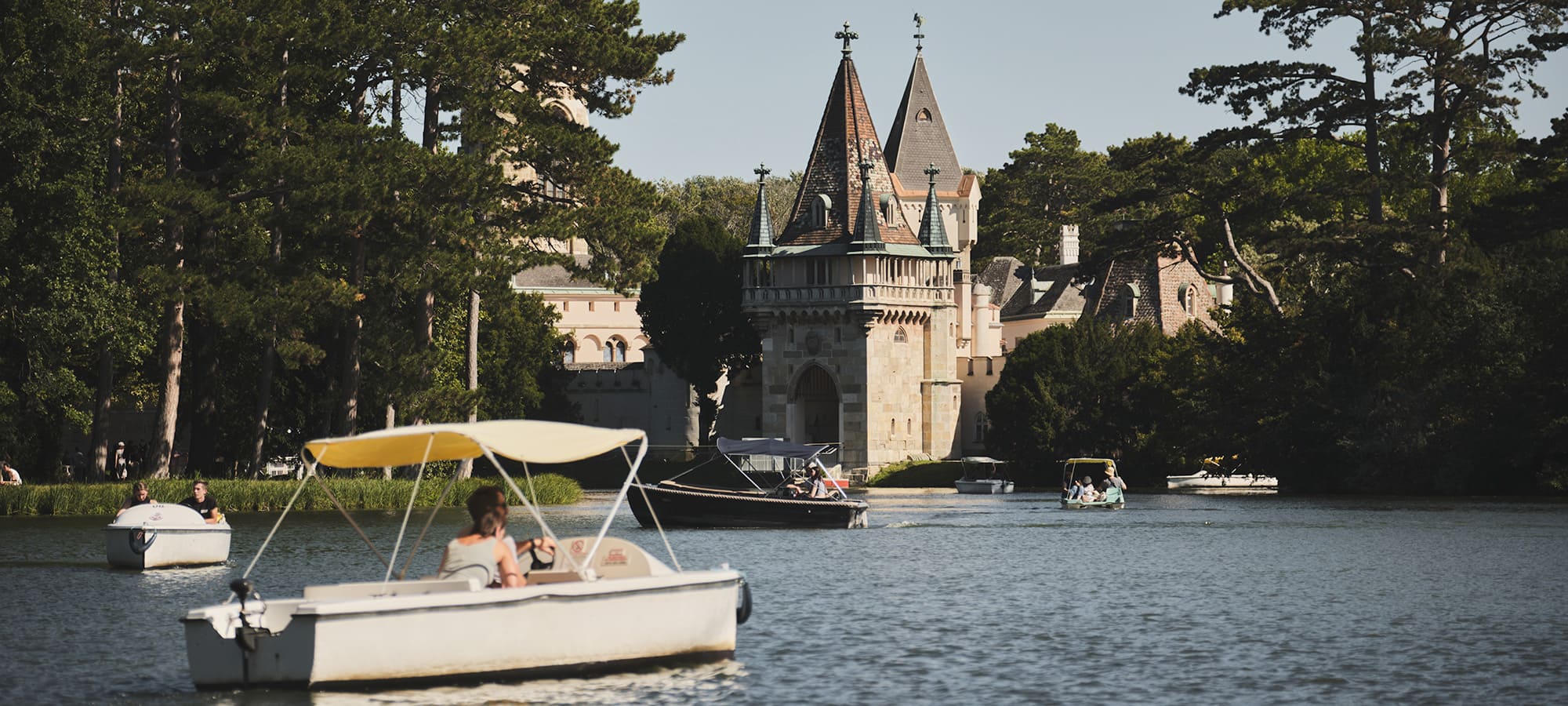 Während der Saison von Ostern bis Allerheiligen: Museumsbetrieb in der Franzensburg, Fähre, Bootsverleih am Schlossteich.