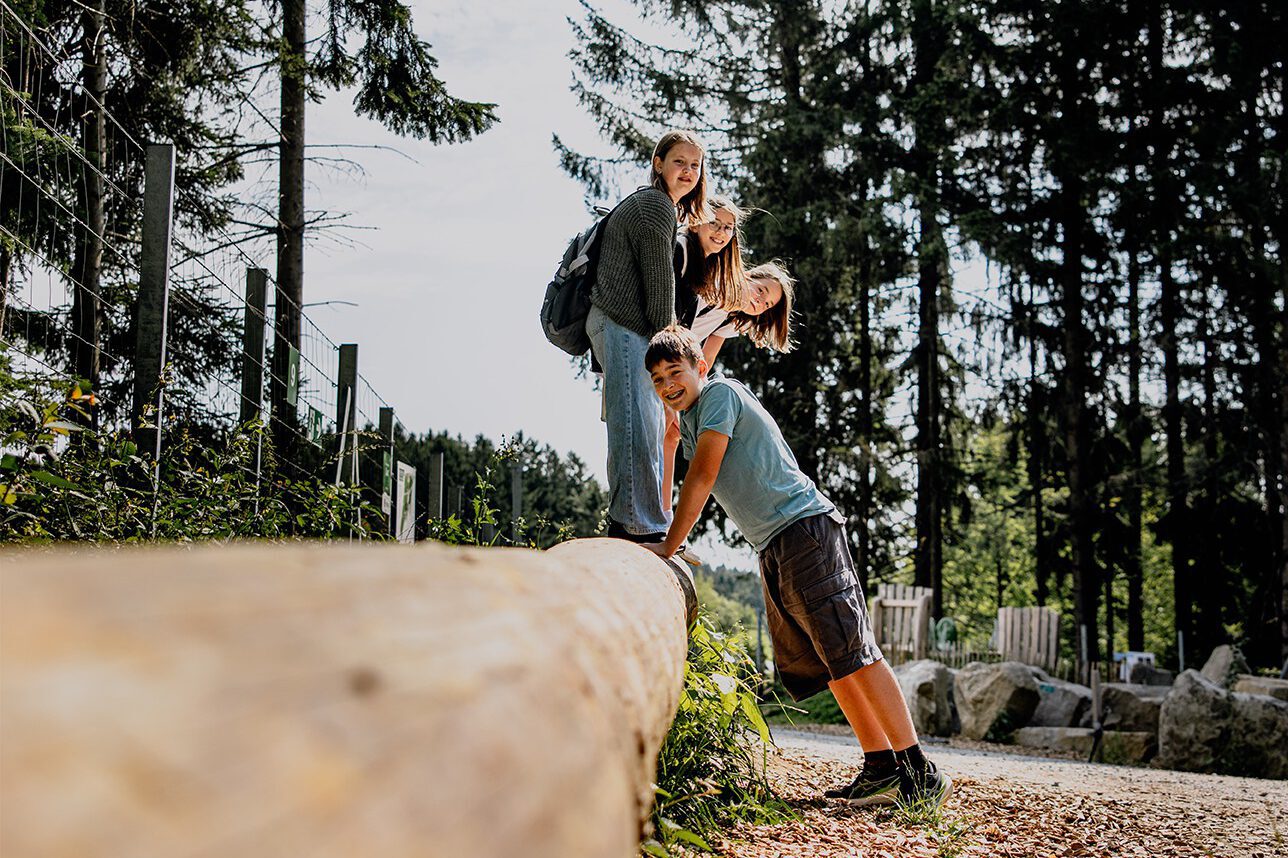 The walk along the visitor’s path, about 500 m in length, is livened up by a variety of playing facilities. There are exhibitions, a low ropes course, a movie room, an obstacle course and a souvenir shop – all of which offer original insights into the world of bears and other animals.